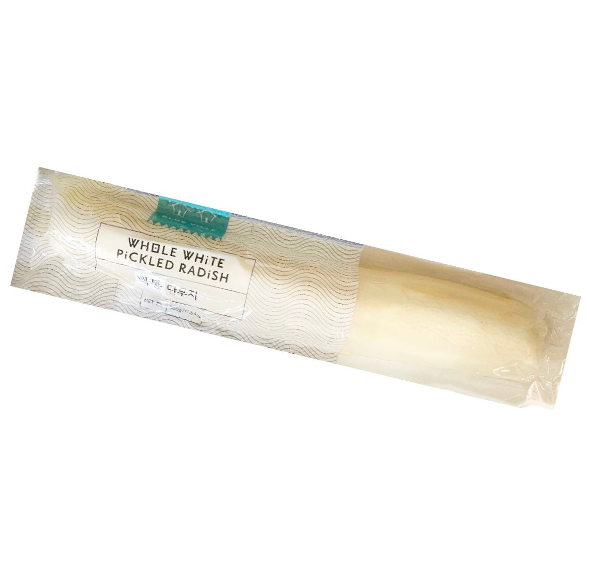 A type of pickle made using whole white radish, which is called in Japanese language by the name Takuan radish, and Danmuji in Korean language. In Japanese culture, takuwan is served at the end of the meal, as it is believed to have digestion capabilities. In Korea, danmuji is a prominent side dish which is served alongside small meals and snacks.